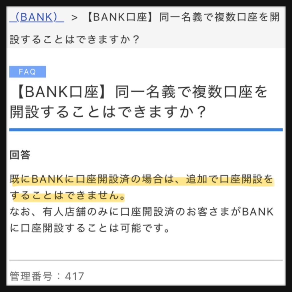 もう一つ口座を作ることはできませんでした…